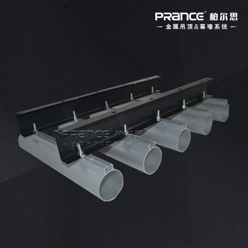 4、型材鋁圓管是一種開(kāi)放式設(shè)計(jì)的天花,采用單邊式快捷簡(jiǎn)單的安裝方法,裝卸功能非常方便,有利于天花頂其它設(shè)施,如電線、水管、燈具、消防設(shè)備等的維修。