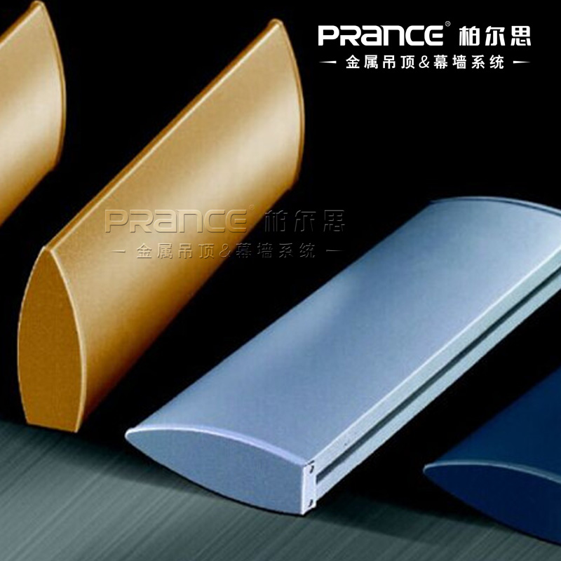 機翼型葉片:由特殊鋁材通過擠壓成型,安裝結(jié)構為利用上層50#C槽為主骨,以螺絲和特造的構件與型材圓通連接,防風性好,適用于戶外裝飾(龍骨間距可任意調(diào)節(jié))維護方便,每條垂片都是獨立的,可隨意安裝與拆卸,無須特別工具,方便維護與保養(yǎng);此天花外表柔和,線條立體感感且通風,透氣,流通,排氣散熱的同時,能夠使光線分布均勻,使整個空間寬敞明亮,